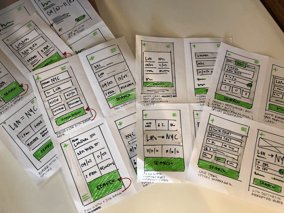 Based on the research findings, the design team set out to create a new flight search results page that addressed the identified problems and met user needs. The design process involved several stages: